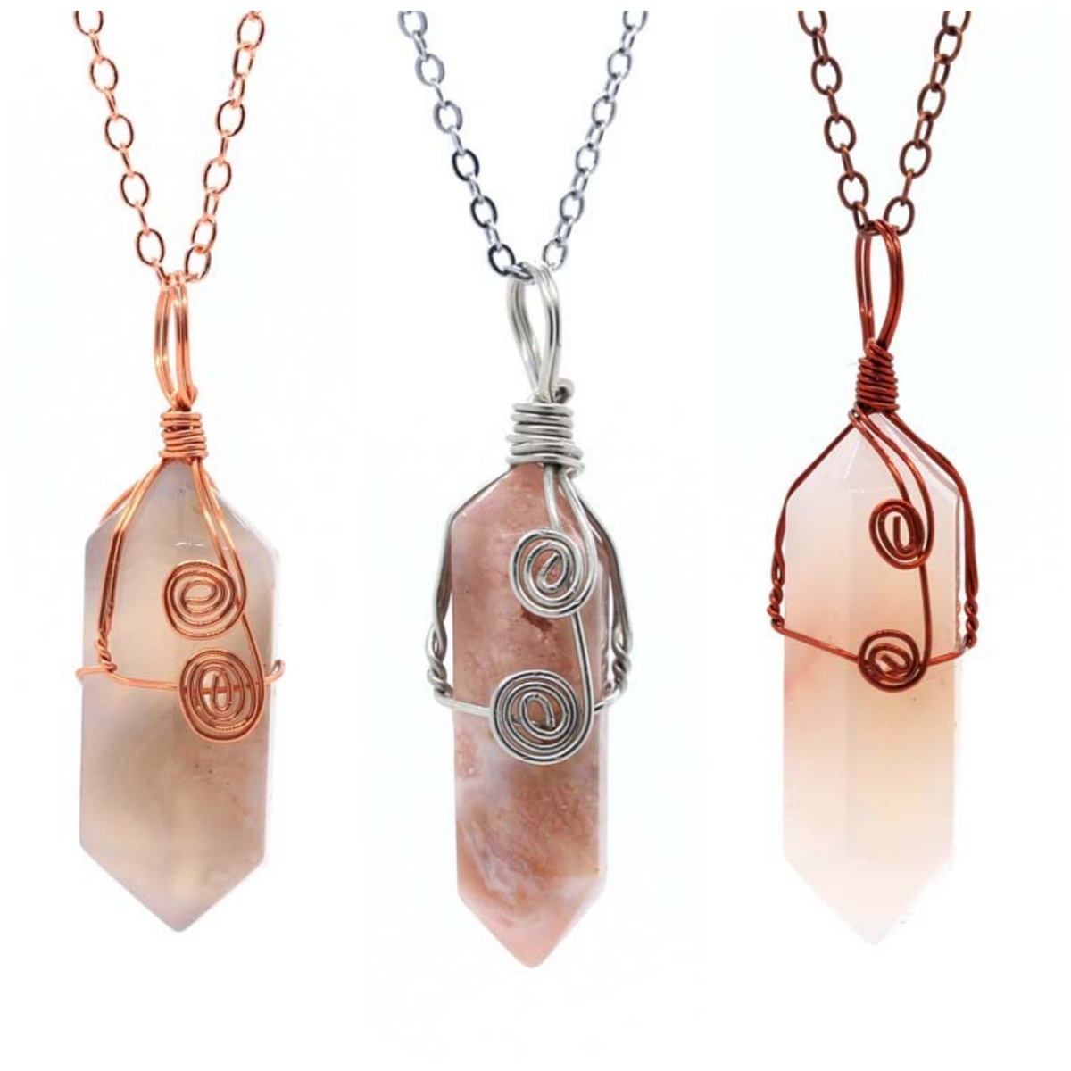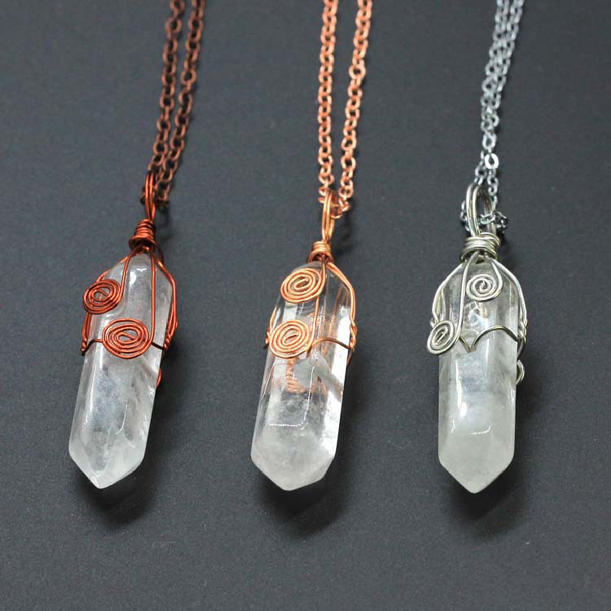 ❤You will receive:3 different wire wrapped crystal pendant necklaces,including Silver,Rose gold,Copper.Each necklace is unique,dainty and charming.