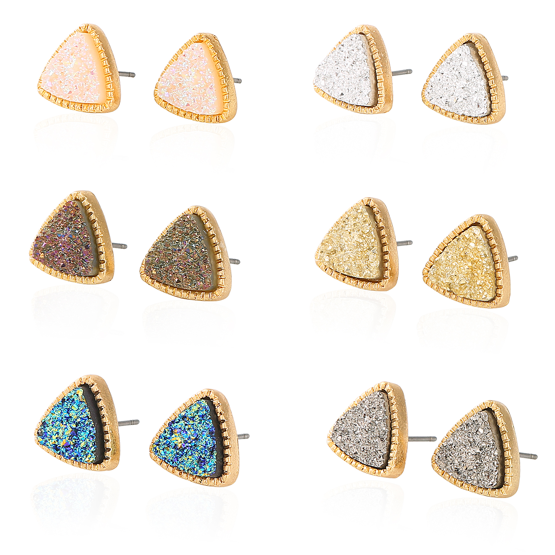 6 Pairs Women Crystal Druse Stud Earrings Hypoallergenic Geometry Shiny Druzy Earring Men boys Fashion Jewelry