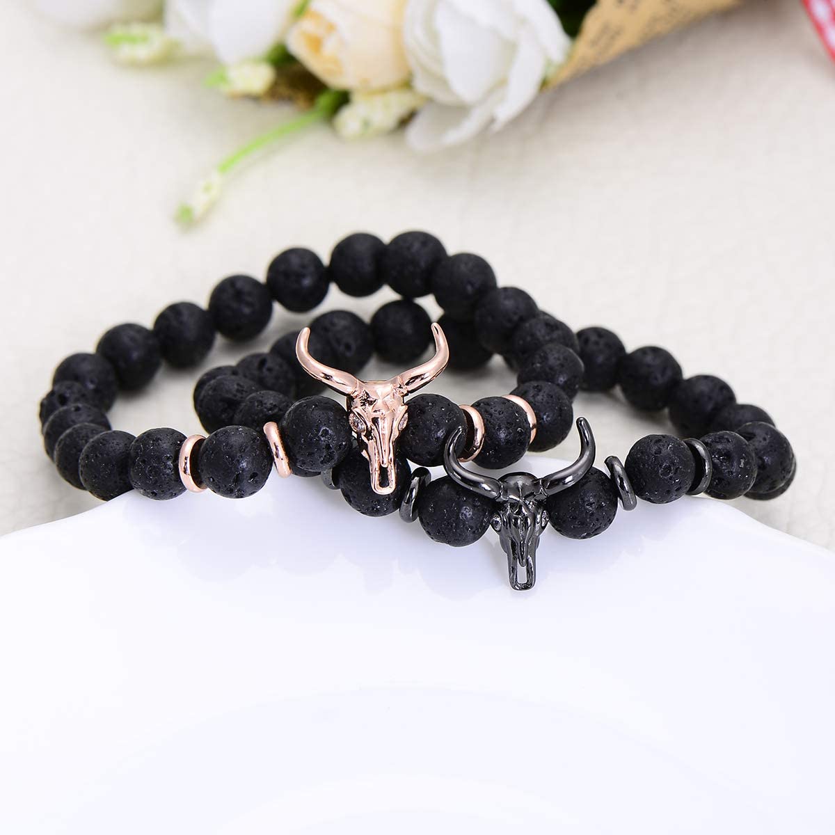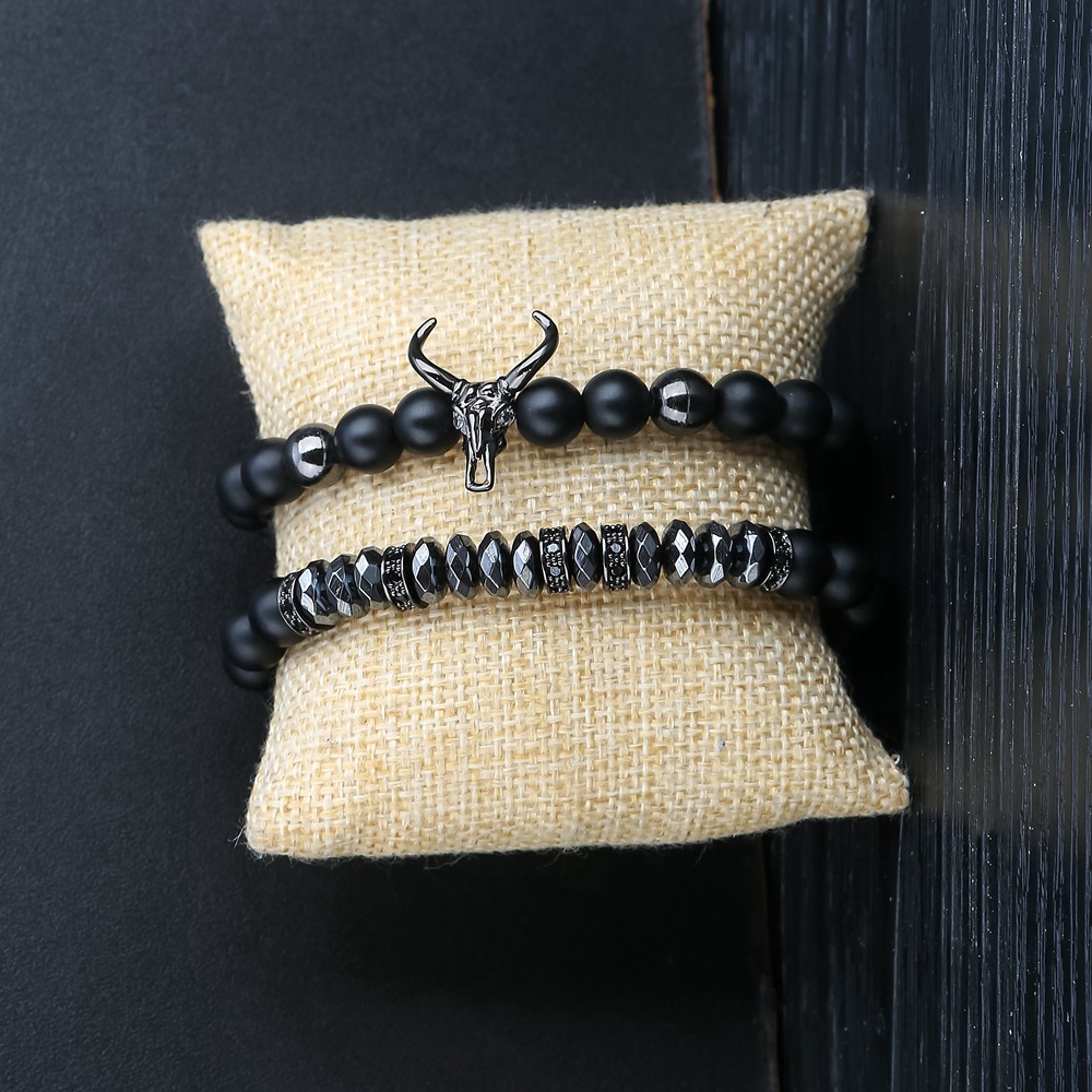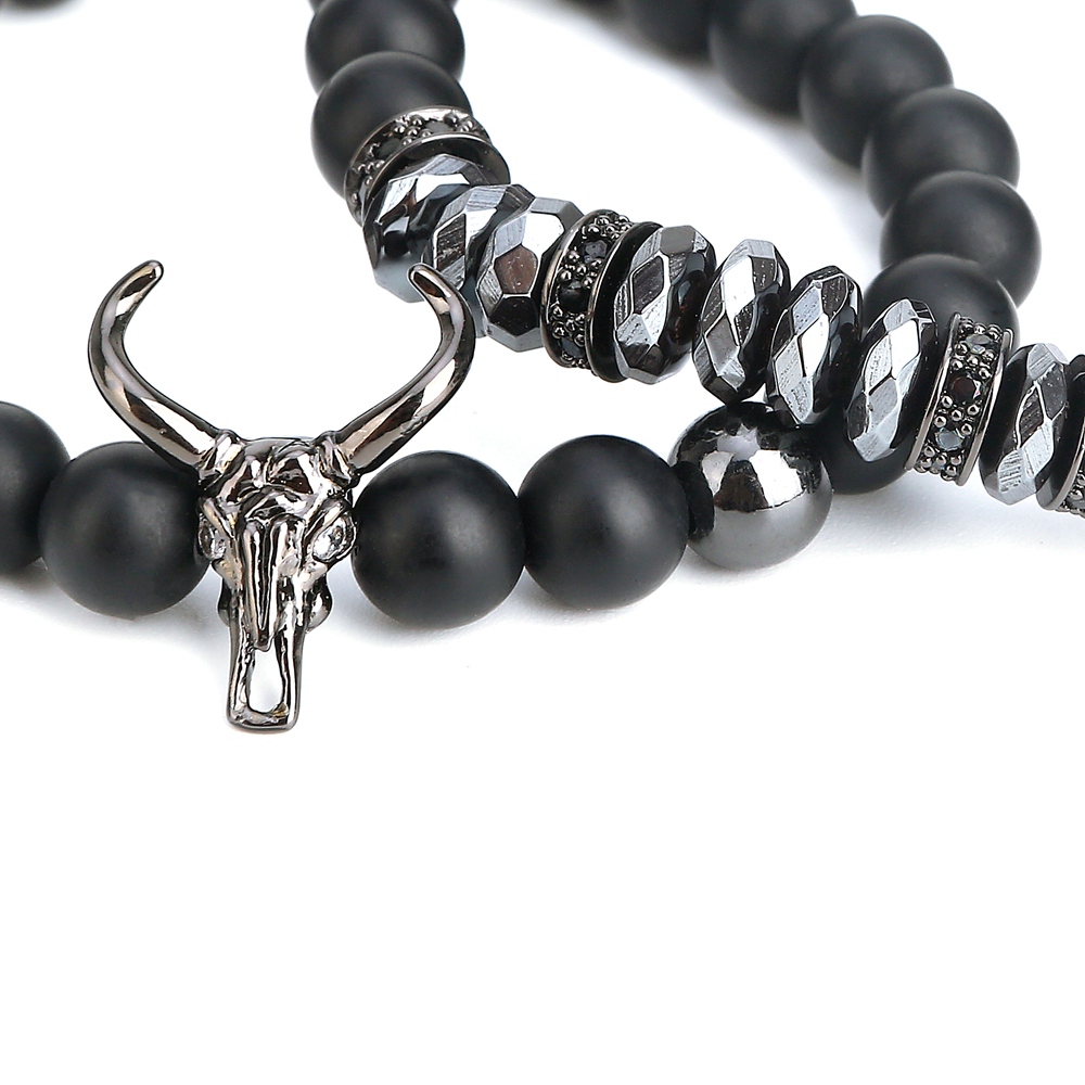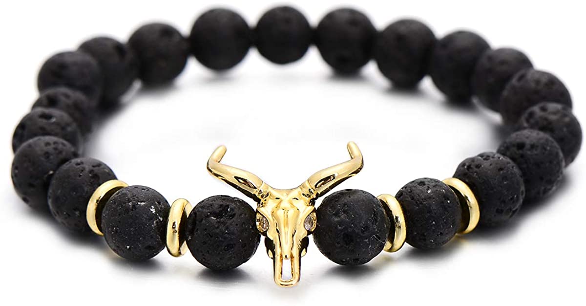 - Bracelet is Made with 8mm Black Onyx Beads and Features Bull Embellished Clear Zircon Gemstones