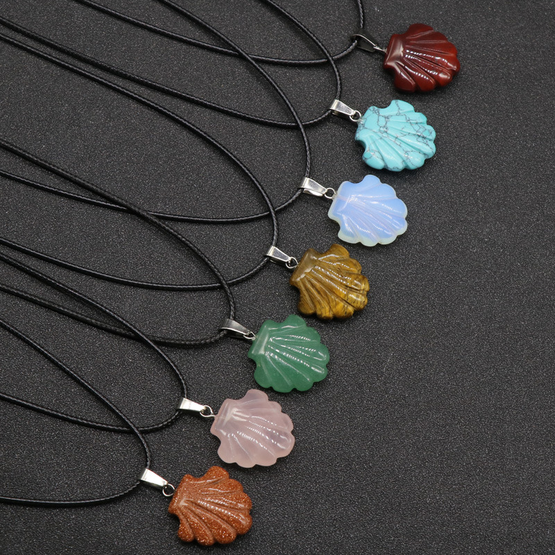 Conch Seashell Gemstone Pendant Necklace Scallop Sea Shell Mermaid Charm Seashore Stone Quartz Crystal Jewelry For Women Gifts Her