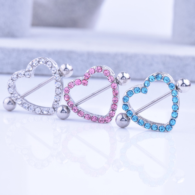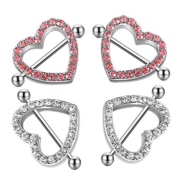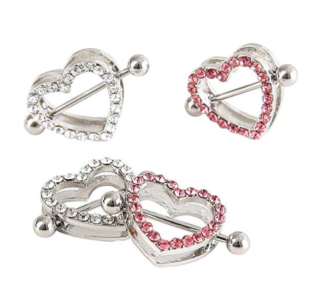 Heart Nipple Rings Stainless Steel Nipple Piercings Barbell 14G Two-Layers Jewelry for Women Men