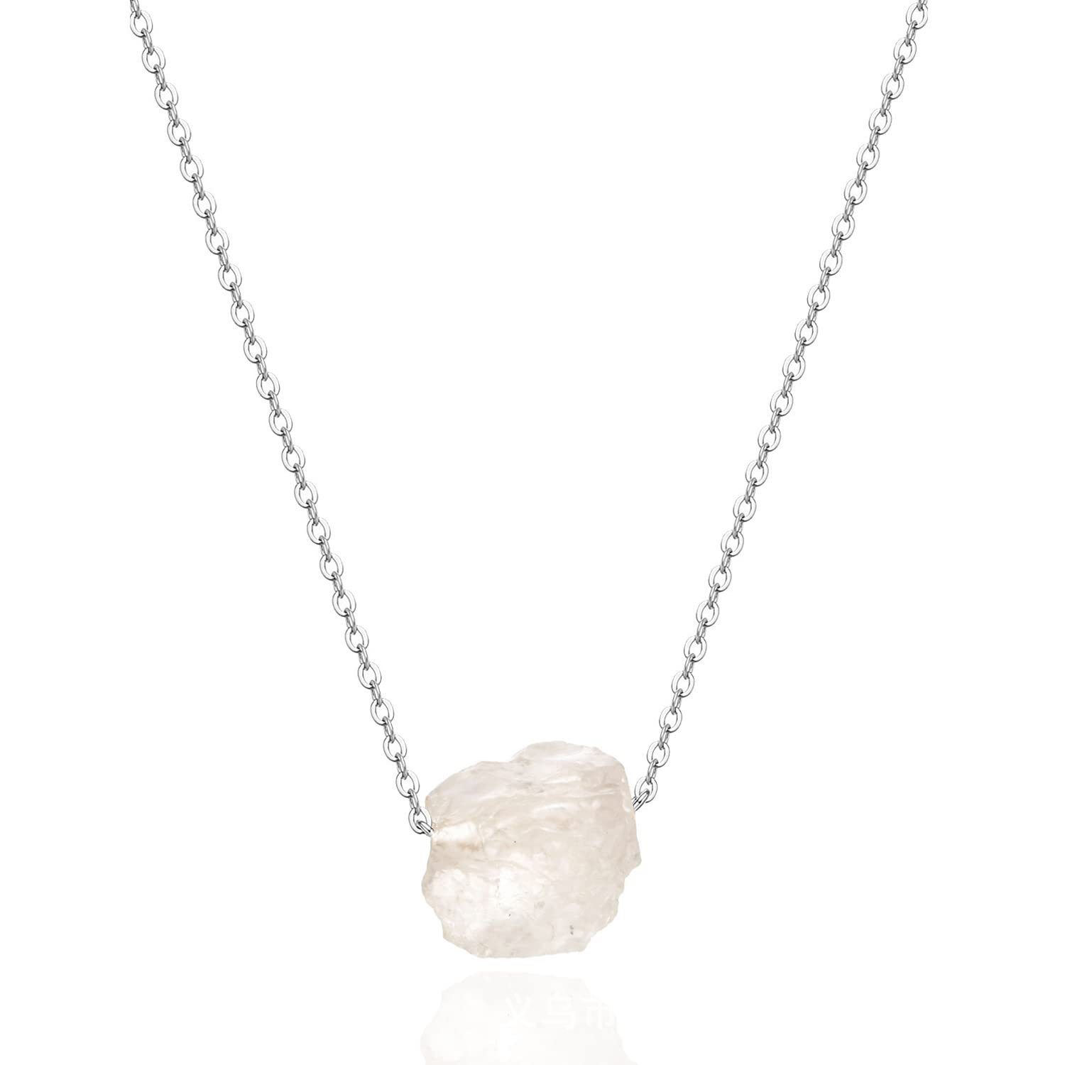 Irregular Raw Stone Beads Pendant Necklace Silver Plated Chain Rough Stone Pendant Necklace Gemstone