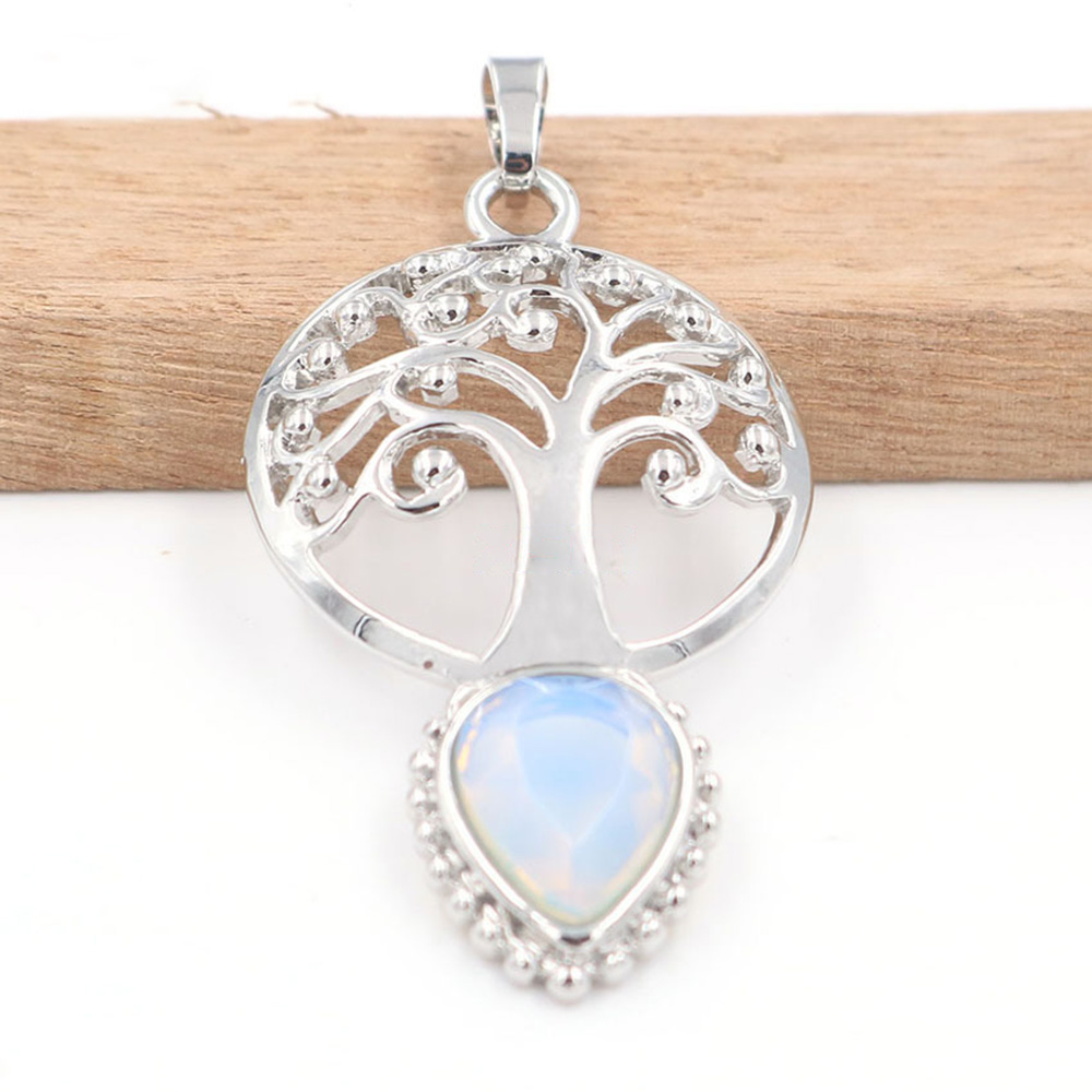 Life Tree Teardrop Crystal Pendants Necklaces Natural Energy Healing Stone Pendant Necklaces Chakra Charm Necklace for Women