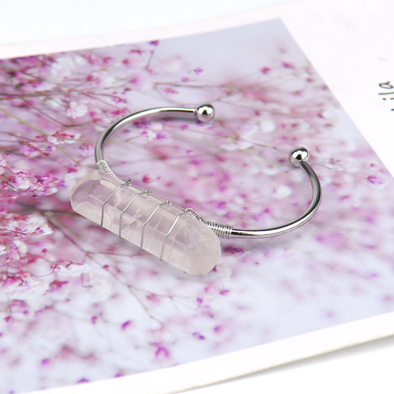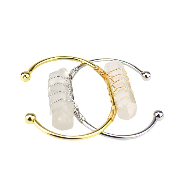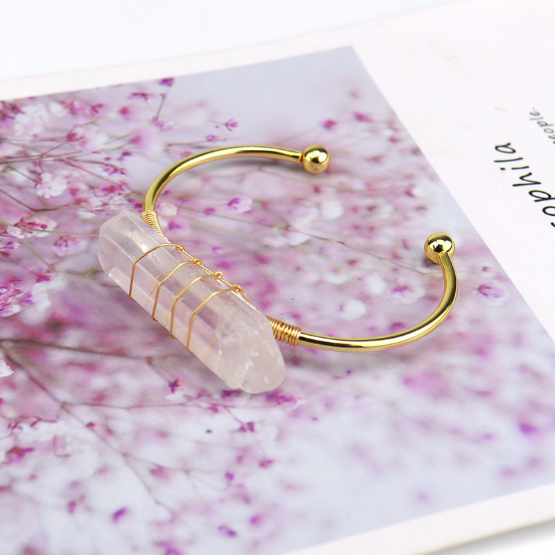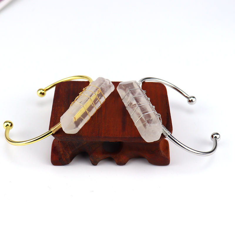 Long Crystal Point Cuff Bracelet for Women Girls Handmade Gold Wire Woven Lift of tree Healing Chakra Crystal Friendship Bangle Charms Jewelry