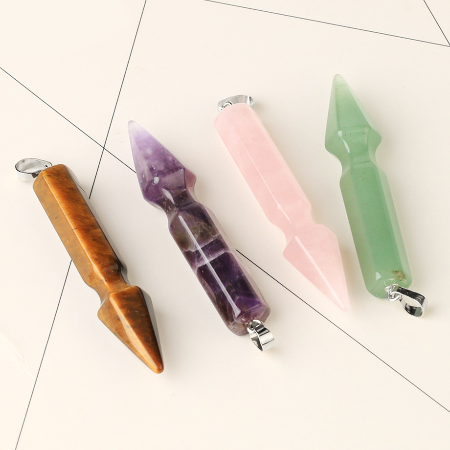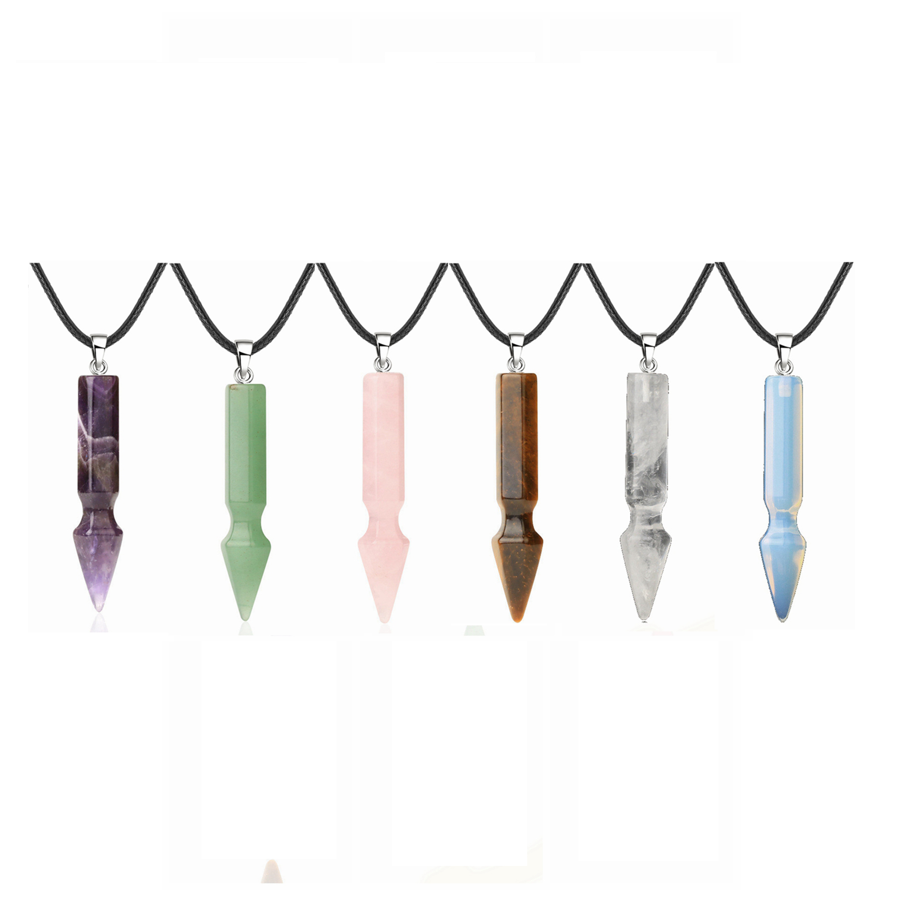 Natural Crystal Point Necklace for Unisex Long Bullet Shape Pendant with Silver Chain