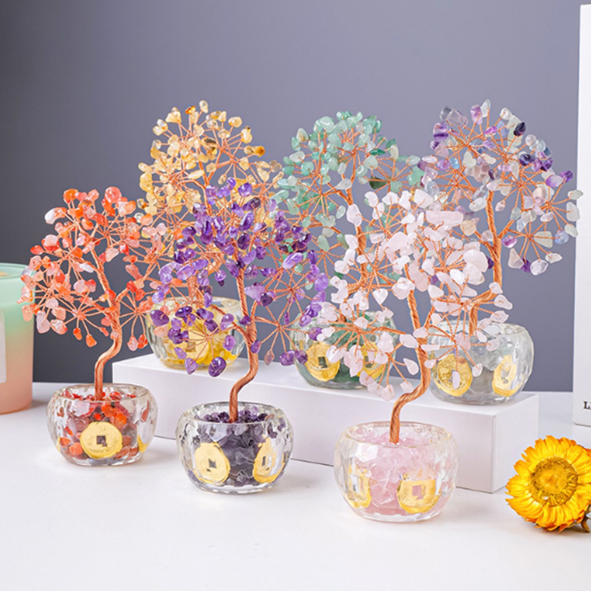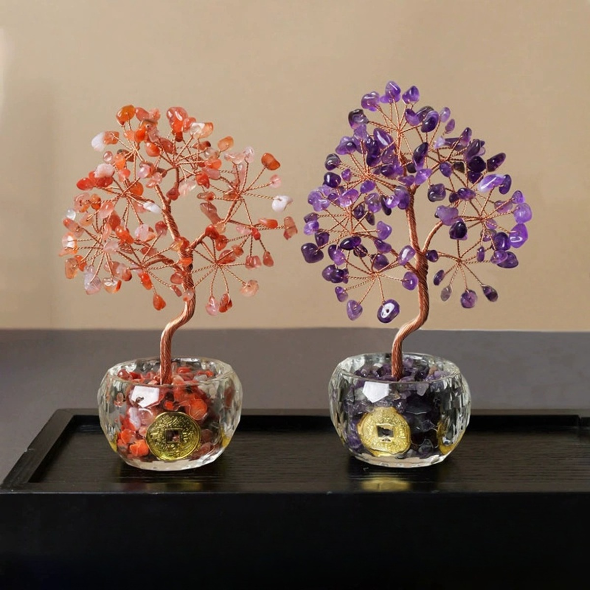 Healing crystal tree, also called life tree, lucky tree, money tree. It is said to bring luck fotune, blessings and wealth.Ideal as a gift for someone you care about (Mom, Dad, Wife, Husband, Friend, Sister, Brother, Niece, Aunt, etc.). Can brought you or the one you love the energe attract success, prosperity, wealth and all good fotune.Also suitable as home decoration,can improve home magnetic field, promote family harmony, and protect family health.