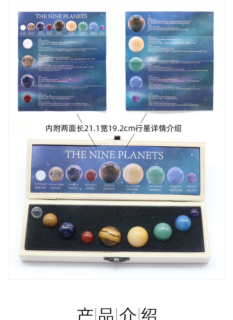 Solar System 9 Planets Gemstone Balls Gift Box for Desk Ornaments Home Decorations Galaxy Universe Model Chakra Healing Crystal Sphere Collective Figurines