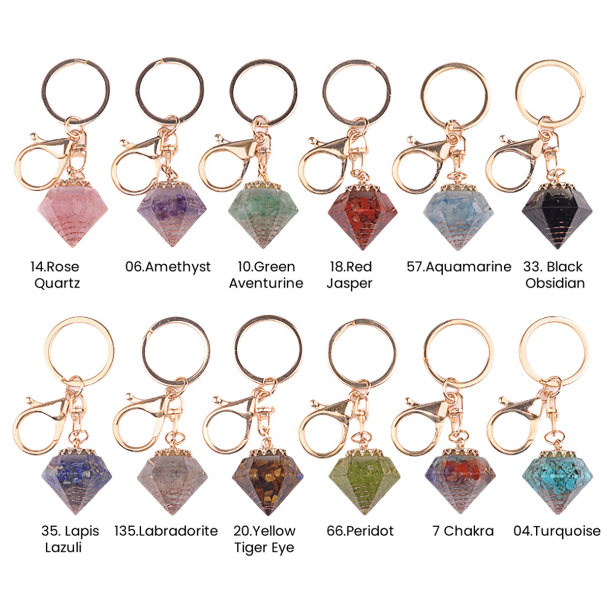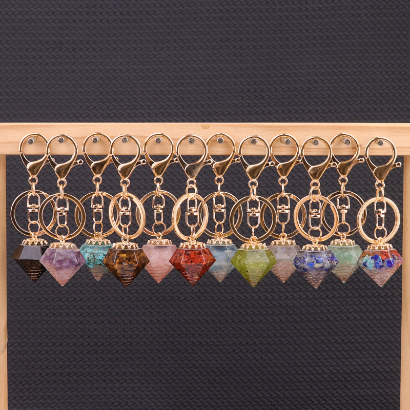 Diamond Shaped Chip Stone Resin Pendant Keychain Gold Accessories